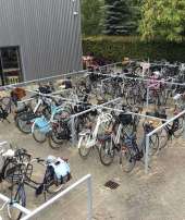 Für die Abstellung der Fahrräder sorgen zehn Einheiten des Modells Double Triangel 10 – robuste Stahl-Fahrradständer mit beidseitiger Nutzung. Jeder Ständer bietet Platz für vier Fahrräder (zwei oben, zwei unten), der Achsabstand beträgt 37,5 cm. Dank der doppelt ausgeführten Anlehnbügel lassen sich Rahmen und Räder sicher anschließen – ein wirkungsvoller Beitrag zur Diebstahlsicherung.