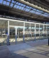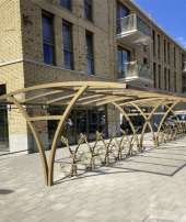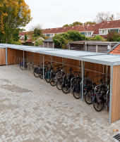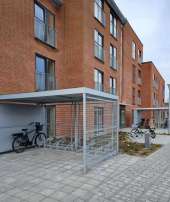 Für dieses Projekt wurden mehrere ein- und doppelseitige FalcoGamma Hi Überdachungen installiert. Die Fahrradüberdachung zeichnet sich durch ihr modernes, offenes Design und die Verwendung von klarem Polycarbonat als Dacheindeckung aus. Dank der zentralen Stützsäule mit zwei Auslegern bleibt der Raum unter der Überdachung hell und übersichtlich. Der offene Charakter trägt zur sozialen Sicherheit bei, während die langlebigen Materialien eine pflegeleichte Lösung gewährleisten.
